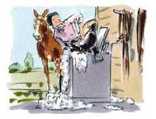 Tack and Leather Care Think of your tack as an investment. You've spent time and money in selecting the best quality leather goods for you and your horse. With diligent and correct leather care, including proper tack and leather storage, you can get the maximum return on your investment through its long and safe use. Saddles, Bridles, Martingales, Breastplates and GirthsJust as your skin suffers abrasions and dryness from irritants like sweat and dirt, your leather does too. The key to tack longevity is the practice of daily leather cleaning after every ride. The traditional method of leather care is to wipe dust and sweat from your tack immediately after use with a sponge or cloth that is barely moistened with cool water. Then rub a thin layer of glycerin soap on the leather to seal the pores and keep it soft but not sticky. Newer methods involve convenient and easy-to-use leather cleaning and conditioning products— a wide array of which exists on the market today. You can choose from one-step cleaning and conditioning creams, such as Supple or Horseman's One-Step, or two-step systems with a cleaning solution followed by a conditioning agent that restores moisture, such as those from Belvoir Cleaner and Conditioner and Leather Therapy Wash and Conditioner.