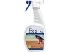 I use it with the brush turned off on the wood floors. I also use it on all the rugs in our home. For shorter pile rugs, I turn the brush on. For the shag and jute rugs, I turn the brush off. The attachments are great for upholstery and reaching dust bunnies up high, in corners and under furniture. If you’re in the market for a budget-friendly vacuum that works well on hard and soft surfaces, I can’t say enough good things about this one. 2 – After all the crumbs and dust bunnies are cleared, I use a Bona spray mop to condition the wood and give it that clean floor sheen. A hand trigger makes mopping quick & painless. For our medium toned floors, I prefer the shaggier dusting pad. It does a better job of attracting dust and cat hair than the lower pile cleaning pad. I just throw the dusting pad in the wash (no fabric softener!) and let it air dry. The cartridge is refillable. I keep a large jug of Bona cleaner on hand for refills. It’s odorless, non-toxic and doesn’t leave any residue.
