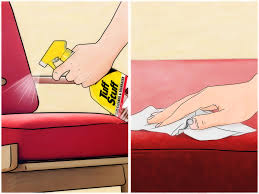 Take white or apple cider vinegar and soak a cloth. Blot the stain on the upholstery with the fabric, saturating the fabric with the vinegar. Make sure you don't scrub too hard on the fabric so you don't make the stain set in more or harm the fabric. You can gently rub the stain with the cloth in a circular manner to help remove the stain particles with the cloth. If you don't have vinegar, you can also use vodka. The smell of either will evaporate once the fabric dries. Use heavy duty cleaner. If none of the other methods of stain cleaning work, you may need to try a heavy duty commercial cleaner such as Tuff Stuff, Resolve, or Folex. Take a cloth or sponge and wet it. Spray the cleaner directly on the fabric and use the cloth to blot the stain. You can also gently rub the spot with circular motions to help loosen the stain. Make sure you test the cleaner on a part of the upholstery that isn't normally visible. You want to make sure the cleaner won't hurt the fabric. If you have a wine or coffee stain, try Wine Away.