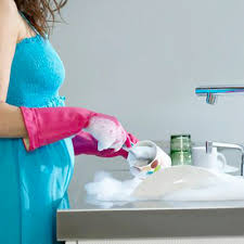 Run the exhaust fan in your bathroom, too, while you’re tidying there and for 15 minutes or so afterward. 5 / 9DO: Wear gloves.During pregnancy, your skin is much more sensitive than normal. Products that never bothered you before could cause contact dermatitis — and turn your skin into an itchy, irritated, and inflamed mess. Chlorine, detergents, bleach, added dyes, and fragrances — stuff you’ll likely find in many of your cleaning supplies — are all potential culprits. So get a pair of latex gloves and use them every time you clean to protect your hands and arms. 6 / 9DO: Play the pregnancy card.Once your baby arrives, you’ll probably be cleaning up something every day for the next 18 years or so. So take advantage of your “condition” to minimize your cleaning chores now. It’s not like you don’t have a good excuse: Pregnancy makes you incredibly tired (most of your body’s energy is going toward growing that beautiful baby). Plus, even mild smells may make you nauseated — and your expanding belly makes it difficult to bend, squat, and get up from your knees, all the moves required when cleaning house.