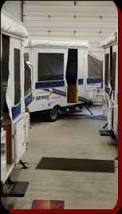 This stuff really messes with EPDM. EPDM will blister and this will allow water to seep in to the newly exposed wood sub frame. Go to any RV supply store and tell them you want to clean your EPDM roof. You want to pay special attention the area around the ladder, it gets a lot of wear. People have a tendency to always step on the same place every time they step onto the roof from the ladder... It has to do with the hand holds when stepping off of the ladder. Getting on the RV is sort of a learned technique. As a rule of thumb, you want to stay off your roof as much as possible. Just being up there will track dirt, grime, and grease. Step 11 is where you will save a ton of work by putting sheets of plastic on the sides of your vehicle. This will prevent black streaks from forming on the sides of the RV. Be very methodical when you are on top of your rubber roof. Anytime anyone is on top of an RV, safety has to be a priority. Focusing on some task and stepping off the thing is not the way anyone wants to end the day!