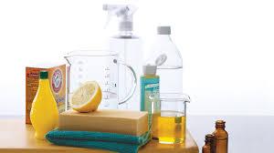 A deodorizer and gentle scrub; softens hard water, removes acidic stains, and polishes shiny surfaces like stainless steel without scratching. A deodorizer, disinfectant, mild acid, and preservÂative; breaks up dirt, grease, mineral deposits, mold, and soap scum.some, including eucalyptus, lavender, and tea tree, are natural disinfecÂtants and antifungals. Pure essential oils can irritate eyes and skin upon contact, so handle carefully. Pregnant women should consult a health-care practitioner before using. and natural foods stores. A deodorizer, stain remover, and grease cutter; acts as a mild bleach when exposed to sunlight. A natural oil that helps to nourish and polish wood. Plant-based liquid soap Gentle soap made with oils such as olive ("Castile soap"), palm, and coconut, rather than petroleum derivatives or animal fat. 1/2 of a lemon Pour baking soda into a bowl. Add just enough liquid soap to make a creamy paste. Spread mixture on the flat side of lemon and scrub.