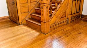 the wood grain (Photo 7). If your floor has a high-traffic area where the clear finish is completely worn away, wet the area with mineral spirits to see what it will look like with a coat ofIf it looks good, clean the area thoroughly, apply a coat of polyurethane and give it at least twoThen you can buff and recoat the new polyurethane along with the rest of the floor. Look out for ridges. The buffer will eat right through the finish down to bare wood at high spots. floor is colored with wood stain, you'll be left with light-colored strips where the stain has been rubbed off. Photo 8 shows how a solid-wood floor can buckle in high humidity. But smaller ridges, where the wood strips cup slightly or one plank sits a bit higher than the next, can cause just as much trouble. If you can flatten a ridge by standing on it, fasten it down with a finishing nail or two. If you can't flatten the ridge, you'll have to roughen the area by hand using sanding screen.