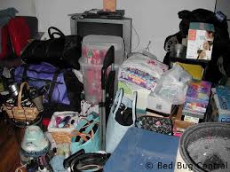 You should also inspect the housing of the vacuum where the bag attaches to the hose as some bugs may escape the vacuum bag. If you have a bagless vacuum, the contents of the canister should be emptied into a trash bag and tied shut. The canister should then be washed to remove any remaining bed bugs or eggs. If you are concerned about the vacuum becoming infested then you should not follow this recommendation. Eliminate clutter Clutter is a bed bug's best friend and a pest management professional's worst enemy. Clutter provides an infinite number of areas for bed bugs to hide and creates areas that cannot be effectively treated by your pest management professional. These areas are a safe haven for bed bugs. Cluttered areas can cause the complete failure of a bed bug control program. If cluttered conditions persist, your pest management professional may only be able to reduce the number of bed bugs and never completely eliminate the problem. Do your best to eliminate clutter. Example of clutter in a room, unlimited areas for bugs to hide and lay eggs