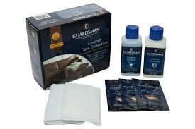 Guardsman Leather Care Collection The Guardsman Leather Care Collection is a total care and maintenance system for leather furniture, to help keep it looking its best. Formulated exclusively for Guardsman by Fenice, a world leader in leather finishes, the formulas contain no oils, which can discolour or damage many leather finishes. The Cleaner and Protector are ideal for use on finished, aniline and bonded leathers, but not intended for use on suede or nubuck. The Ink Remover Wipe should only be used on finished and bonded leathers. Leather Cleaner 250ml: Removes surface grime to keep leather and vinyl looking their best. Leather Protector 250ml: Protects the original feel and colour of your leather, leaving it to look its best while feeling soft and supple. Safeguards against irreversible damage from penetrating stains. Ink Remover Wipes (x3): A specially treated wipe that erases most ink marks, ballpoint pen and lipstick stains from finished leather and vinyl.